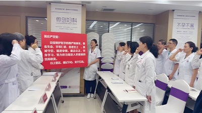 随后,在业务院长宋兆萍的带领下,全体医务人员起立,庄严的进行了依法执业规范行医的宣誓:自觉维护医学的尊严和神圣,敬佑生命,平等仁爱,患者至上,真诚守信,精进审慎,廉洁公正,终身学习,努力担当增进人类健康的崇高职责。